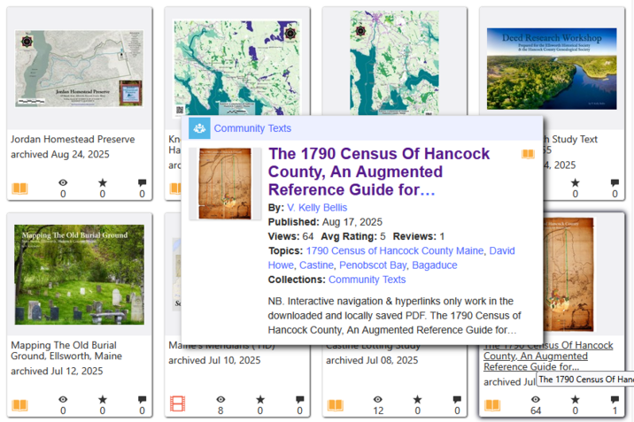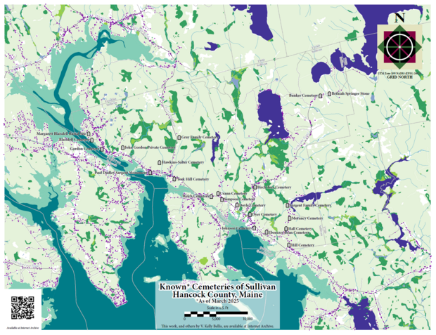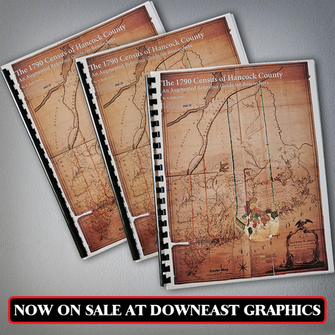 Printed hard copies of Mapping The Old Burial Ground are available from Ellsworth City Hall. Printed hard copies of The 1790 Census of Hancock County, An Augmented Reference Guide for Researchers are available for purchase directly from Downeast Graphics & Printing (https://square.link/u/oyGFWh3h). I receive no royalties or commissions from either of these books to help keep this historical information as accessible as possible.